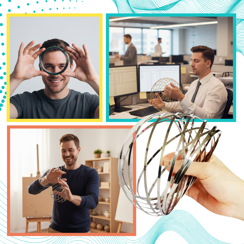 Unlike ordinary toys, this flow ring features a unique 3D kinetic design that comes to life the moment it touches your skin. Built from a single strand of high-quality stainless steel, it expands into a spherical, spring-like structure that dances and glides smoothly along your arms in a continuous loop. This motion-based design captivates users of all ages, blending physics, geometry, and play in a way that’s visually impressive and physically interactive — making it a one-of-a-kind experience.