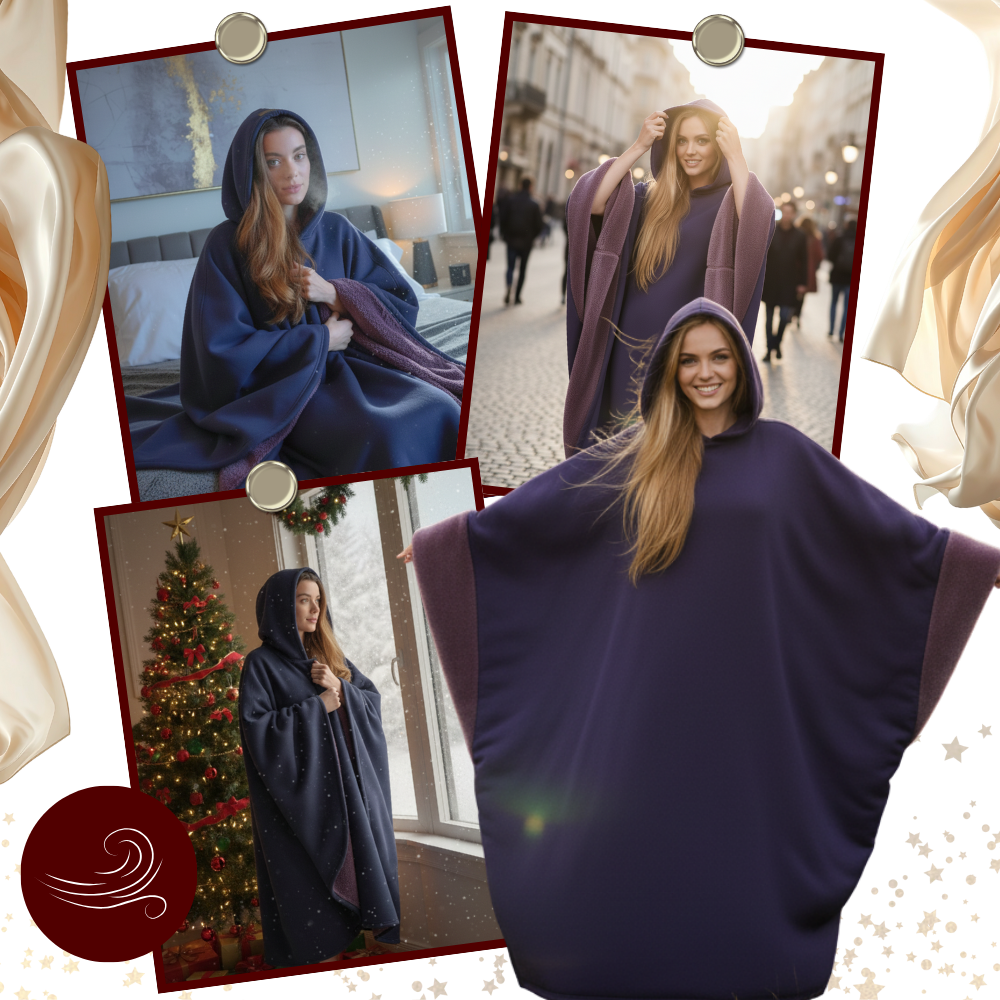 Make a bold yet effortless statement with a design that blends streetwear appeal and cozy innovation. Featuring bat sleeves, an asymmetrical hem, and a flowing cape silhouette, the poncho-style cut turns everyday loungewear into wearable art. The result is a hoodie that’s as functional as it is fashion-forward — stylish enough for public wear, relaxed enough for home comfort.
