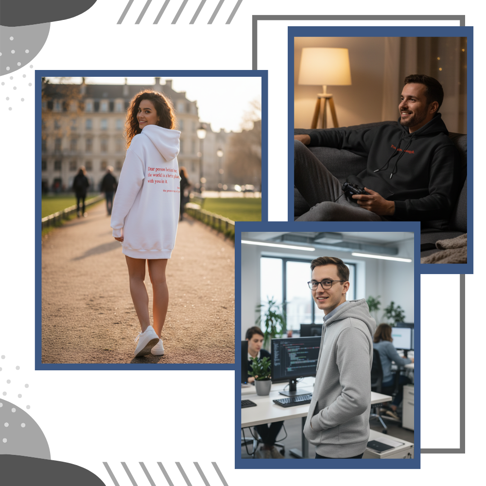 In a world where so many silently battle anxiety, depression, and self-doubt, this hoodie becomes more than just a piece of clothing—it’s a quiet act of compassion. At the heart of its design lies a subtle yet powerful message, thoughtfully placed on the back of the hoodie. This isn’t just fashion—it’s affirmation, not only for the wearer but for every passerby who might be carrying invisible burdens. It’s a gentle way to tell someone, without speaking a word, that their life matters and they are seen. This hoodie spreads warmth in more ways than one —it's a soft, wearable reminder that kindness is free, and you have the power to share it with the world every time you step outside.